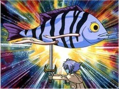 Unlike other fishmen, Rahanimu could move so fast that he appeared as a black blur. In the anime, he was sent out with a group of other chimeras to kill Lina Inverse and her friends. Lina, who had a bad experience with another fishman, was revolted by Rahanimu's appearence. She fought with him but she was unable to land a blow to the fishman due to his immense speed. Zelgadiss Graywords than came in and tricked Rahanimu into running into his sword, slicing him into two clean pieces.