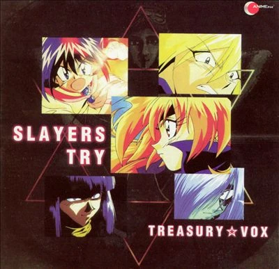 SLAYERS TRY TREASURY☆VOX is a soundtrack consisting of the theme songs and main character image songs from Slayers Try. The CD booklet includes character pictures for each song, showing the characters represented.